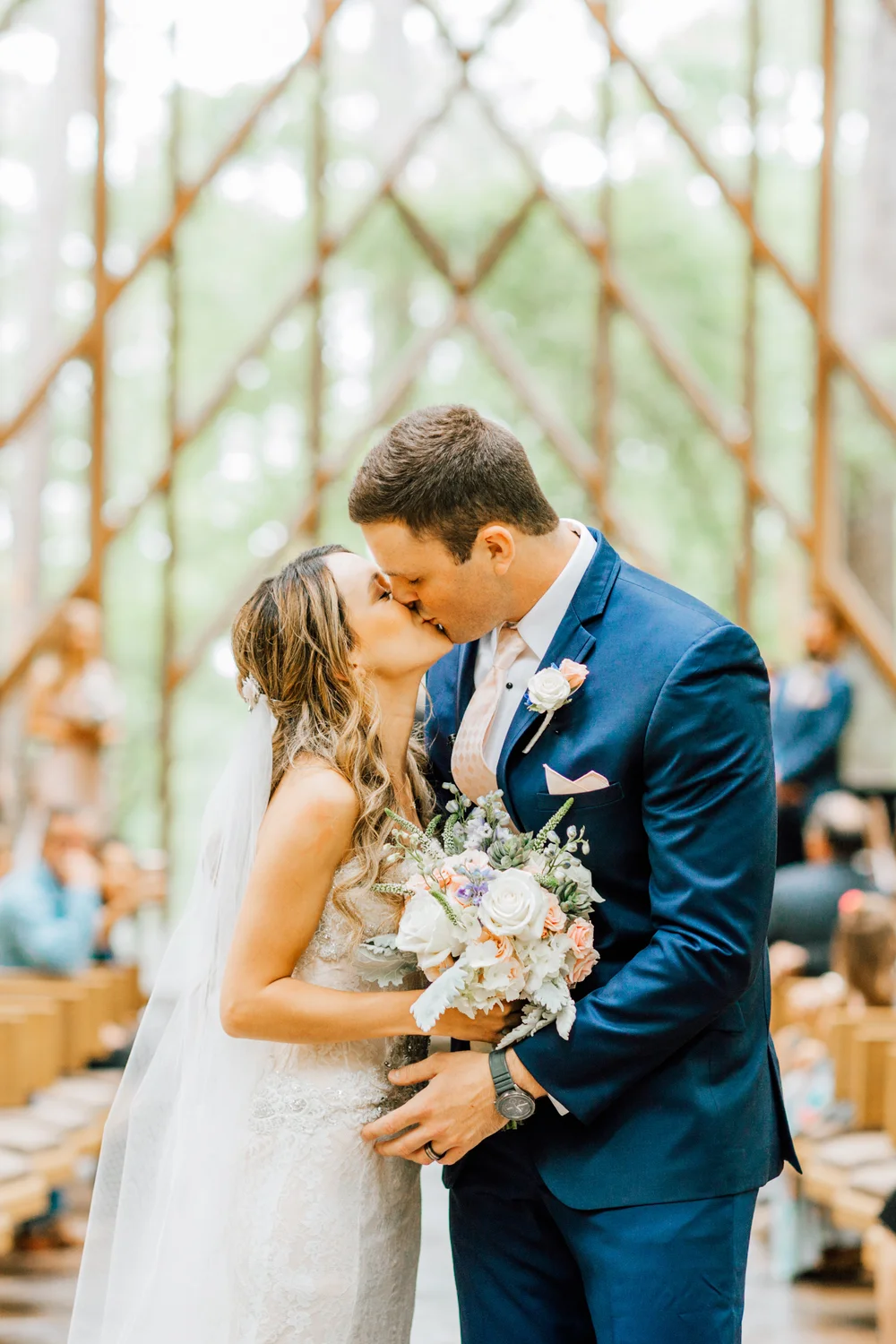 With floor to ceiling glass walls and surrounded by the woodlands of hot springs, arkansas, the anthony chapel was an unspeakably beautiful location for kyle and courtney's wedding.